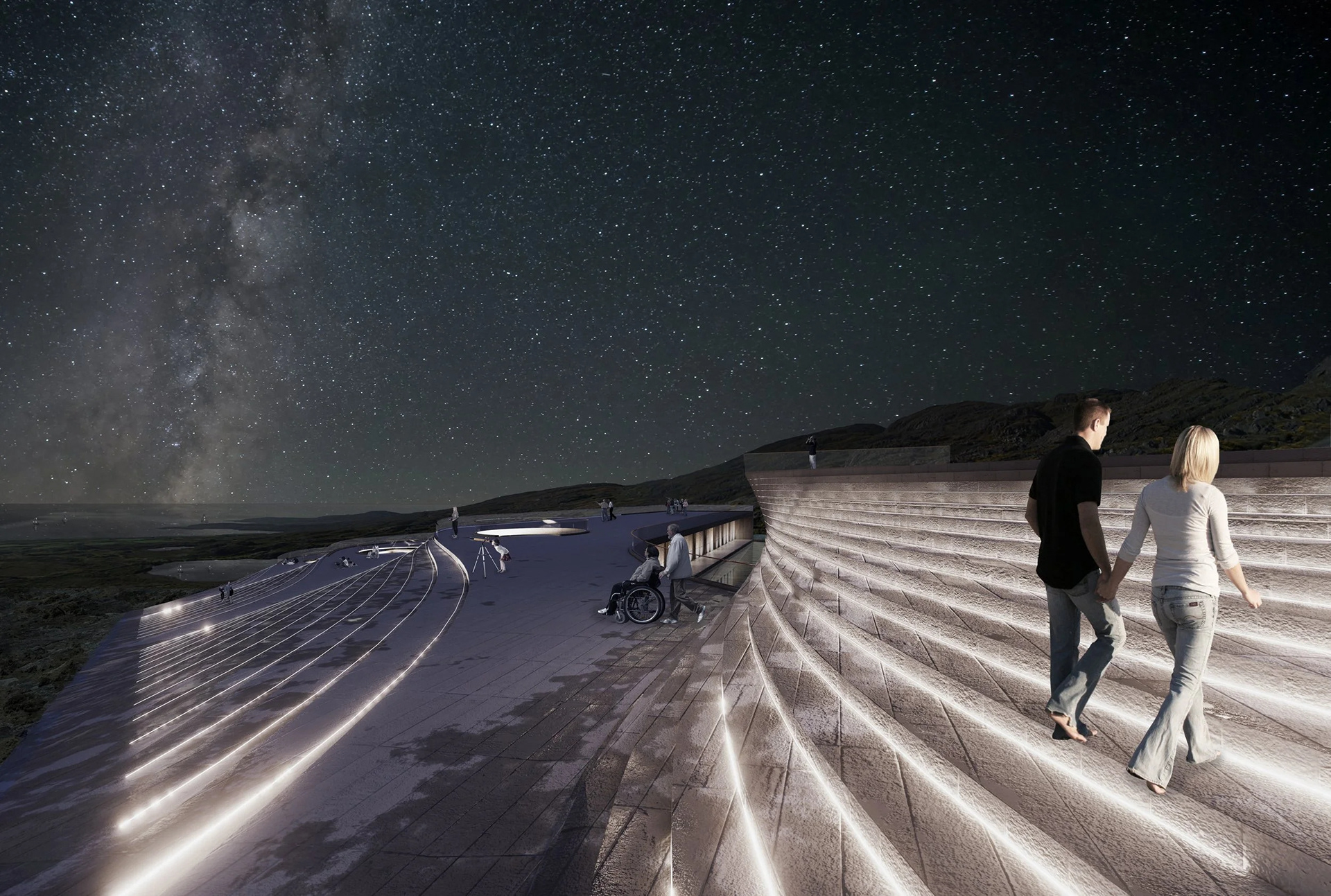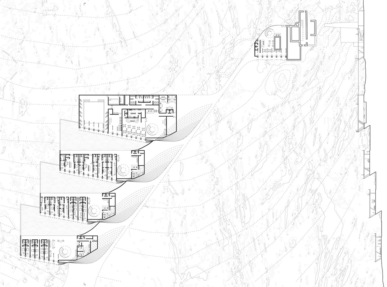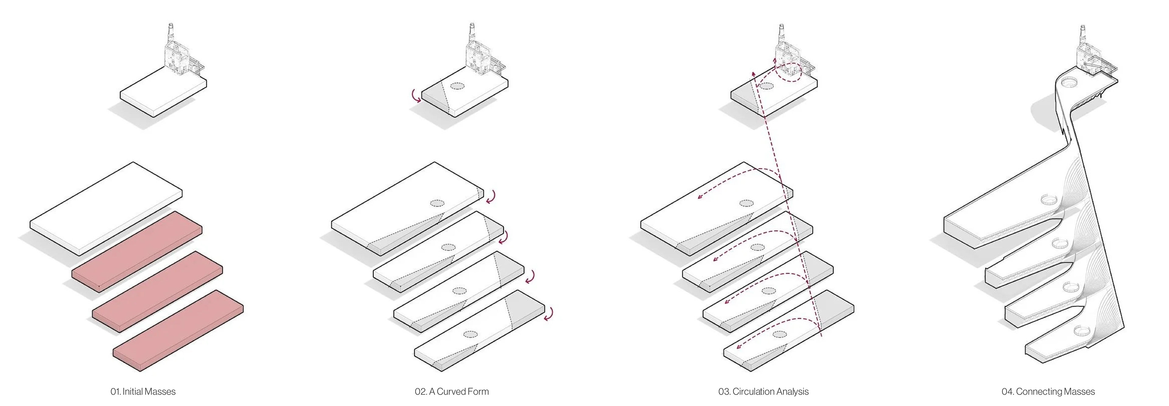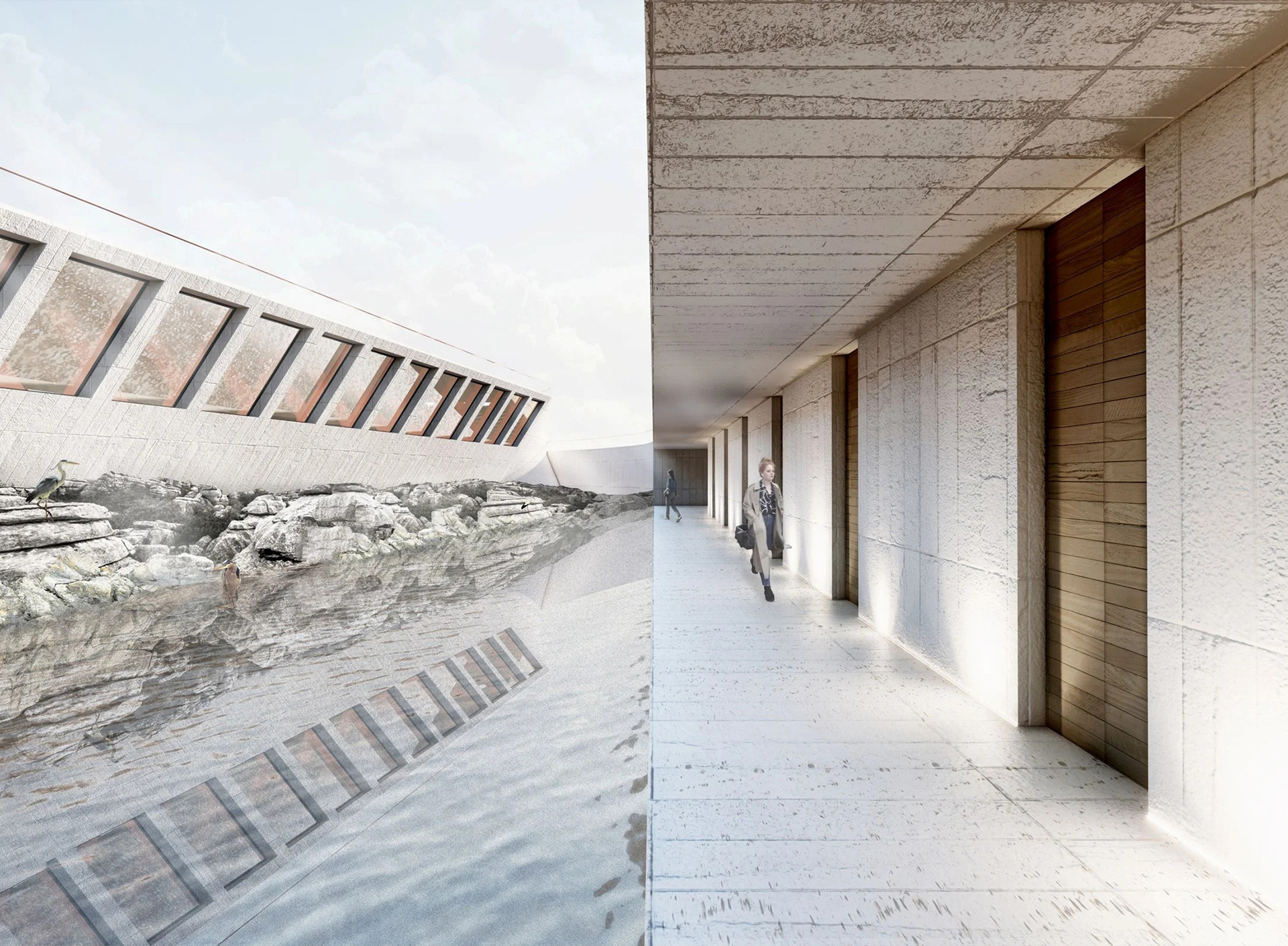 Allihies Sanctuary choreographs a spatial journey through the five stages of the mining life cycle—exploration, discovery, development, production, and reclamation—translating an extractive process into a contemplative architectural experience. Building form, material transitions, and calibrated light guide visitors sequentially through each phase, shifting from compression to release, darkness to illumination, and rough to refined surfaces. Rather than narrating mining as a linear industrial act, the sanctuary reframes it as a cyclical condition, allowing visitors to physically and emotionally register transformation, labor, and recovery. Architecture becomes both mediator and memorial, transforming a history of extraction into a slow, reflective passage toward renewal.