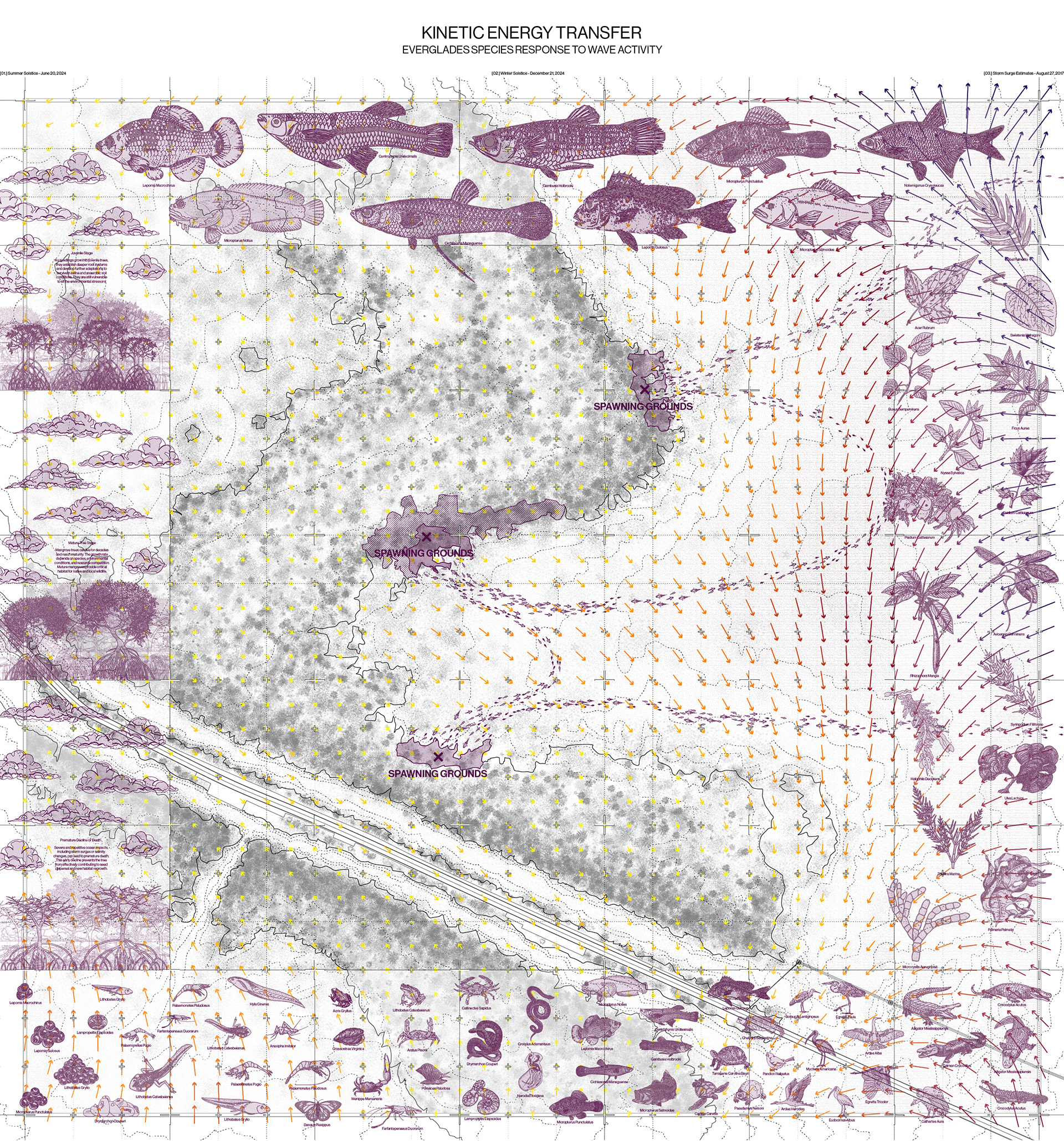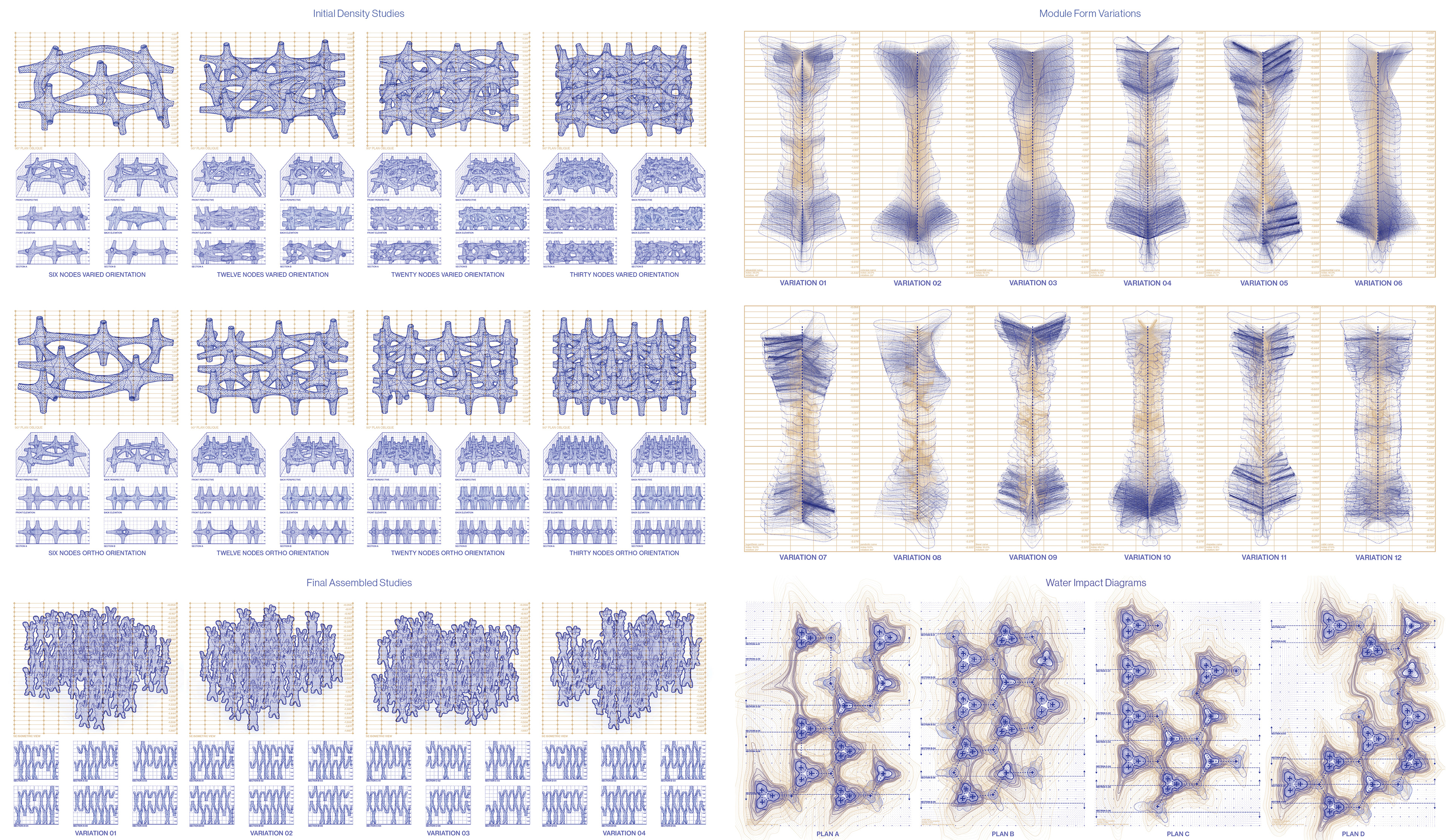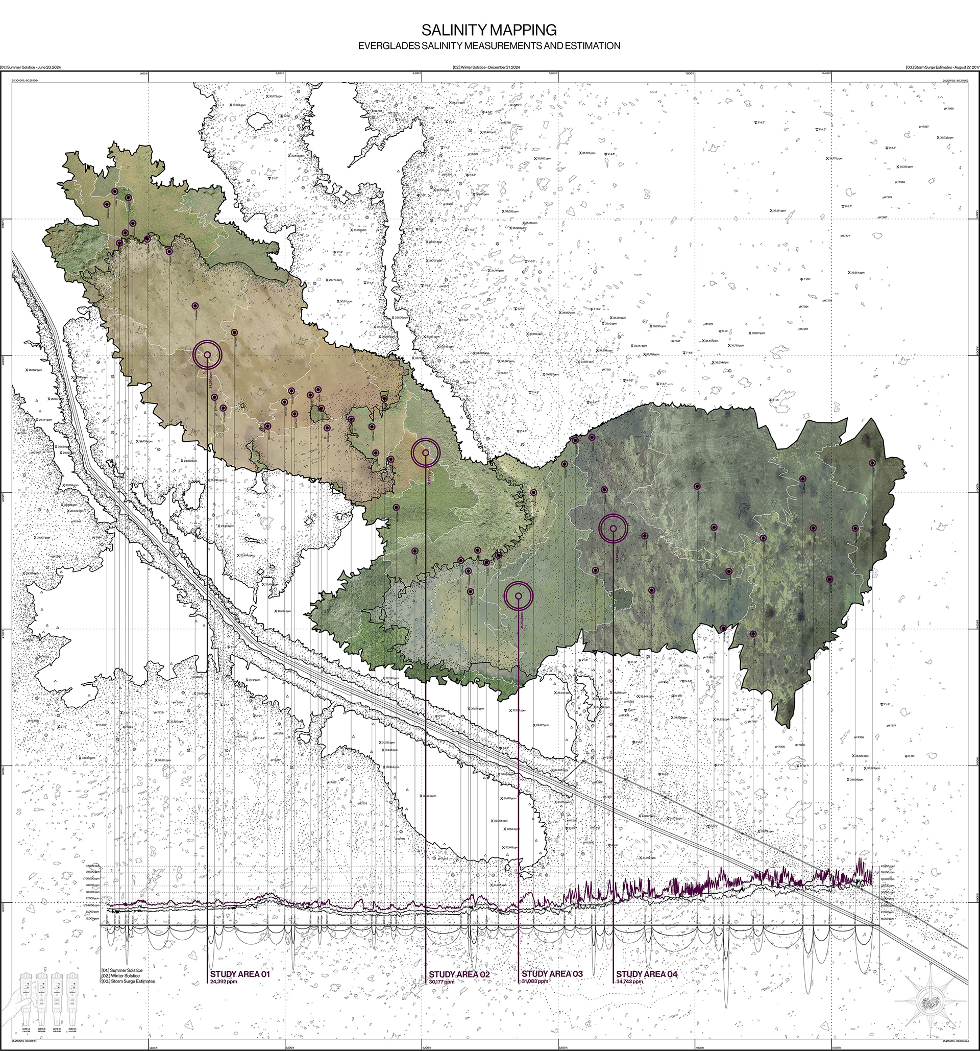 This project prototypes a printed concrete barrier as a remedial instrument, employing architectural design to reduce saltwater intrusion in the South Florida Everglades. Salinity mapping informed the geometry of trigonometrically derived modules, which were then prototyped in clay, resin, and PLA to optimize form for energy absorption and aggregation. The result is a fabricated ecology, where architectural prototyping becomes a tool for restorative intervention in an ecosystem most threatened by climate change.