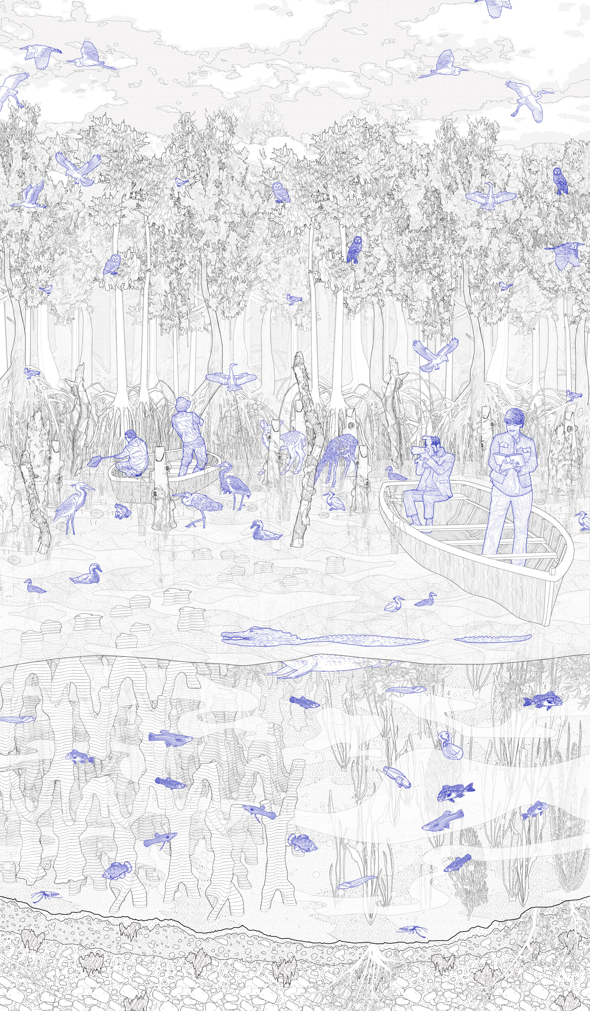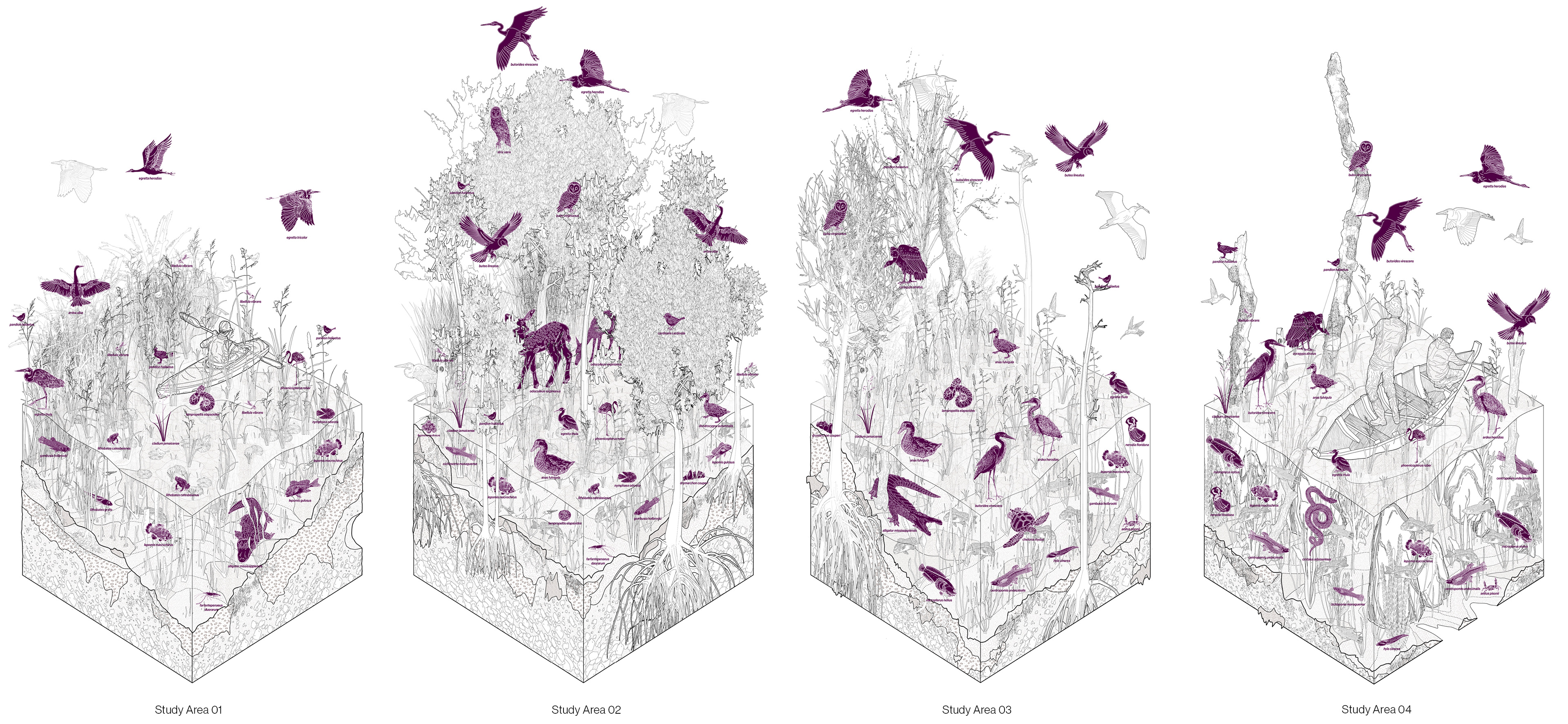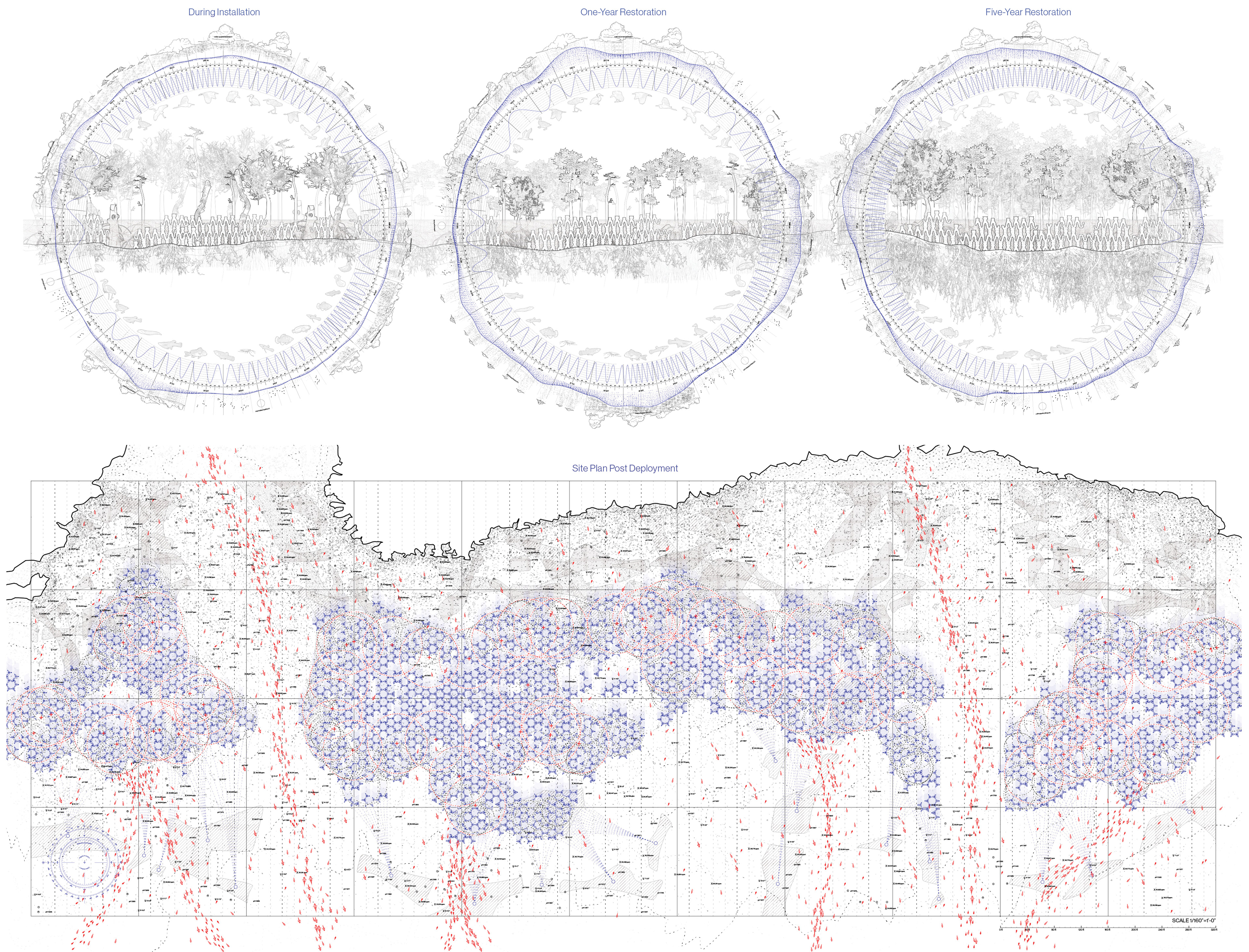 This project prototypes a printed concrete barrier as a remedial instrument, employing architectural design to reduce saltwater intrusion in the South Florida Everglades. Salinity mapping informed the geometry of trigonometrically derived modules, which were then prototyped in clay, resin, and PLA to optimize form for energy absorption and aggregation. The result is a fabricated ecology, where architectural prototyping becomes a tool for restorative intervention in an ecosystem most threatened by climate change.