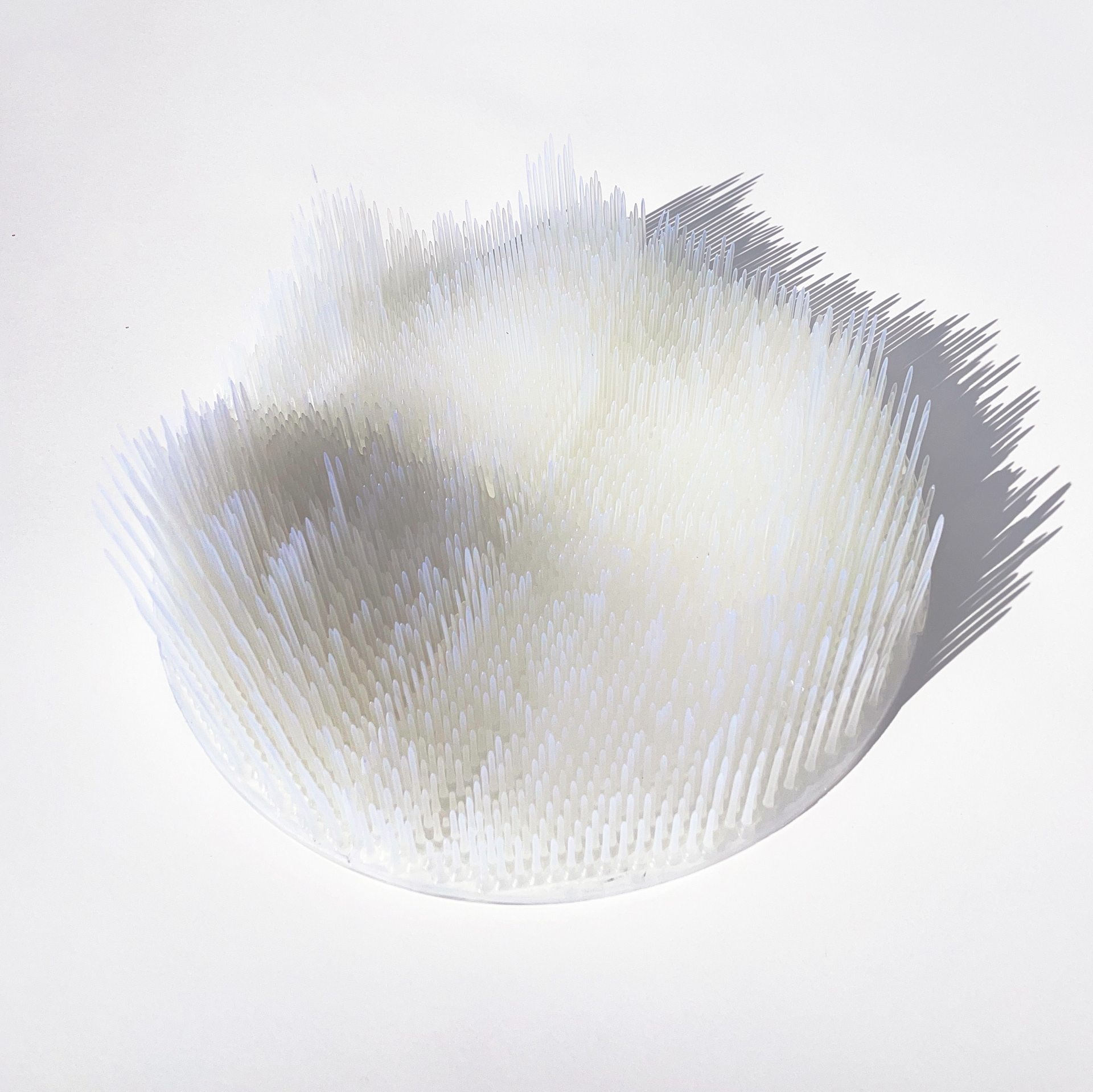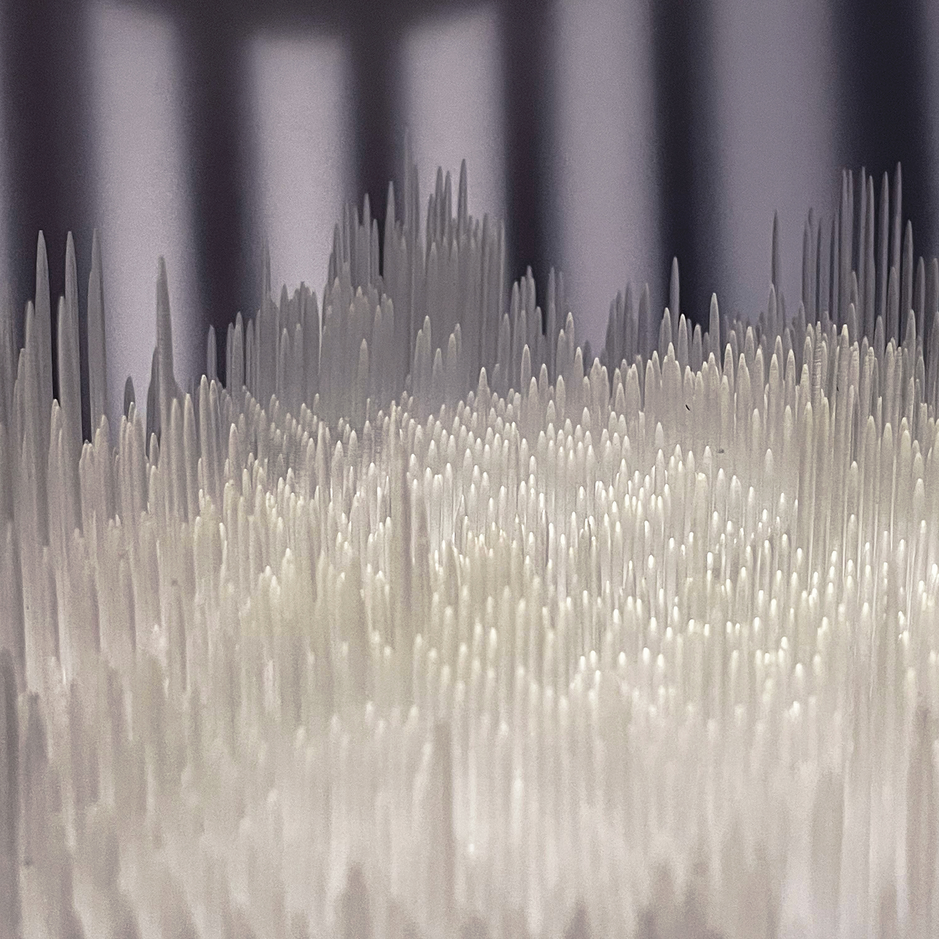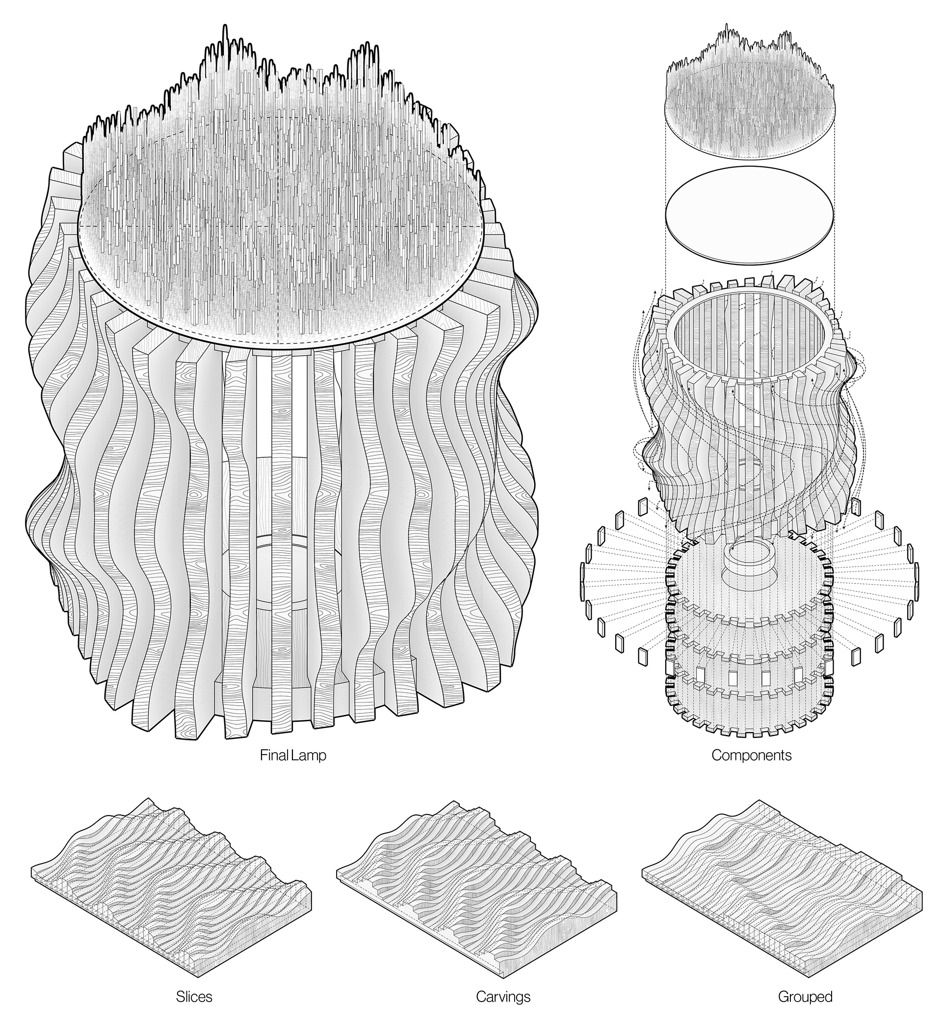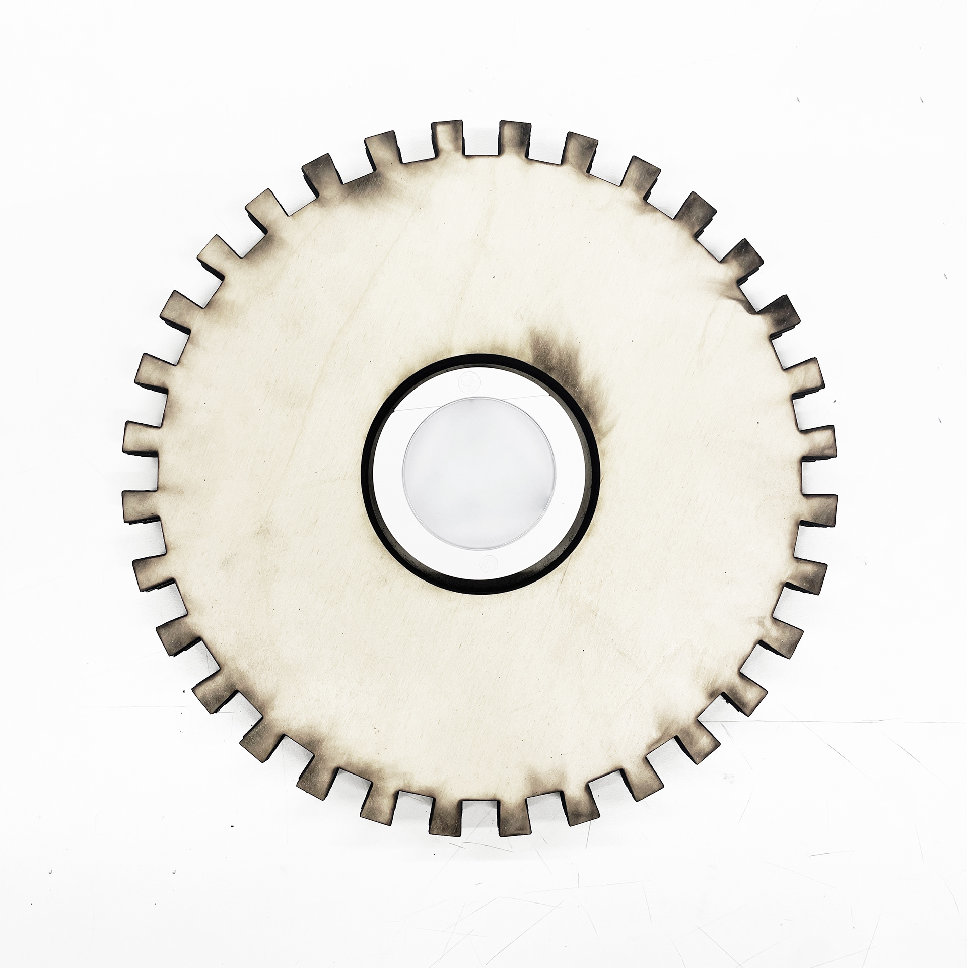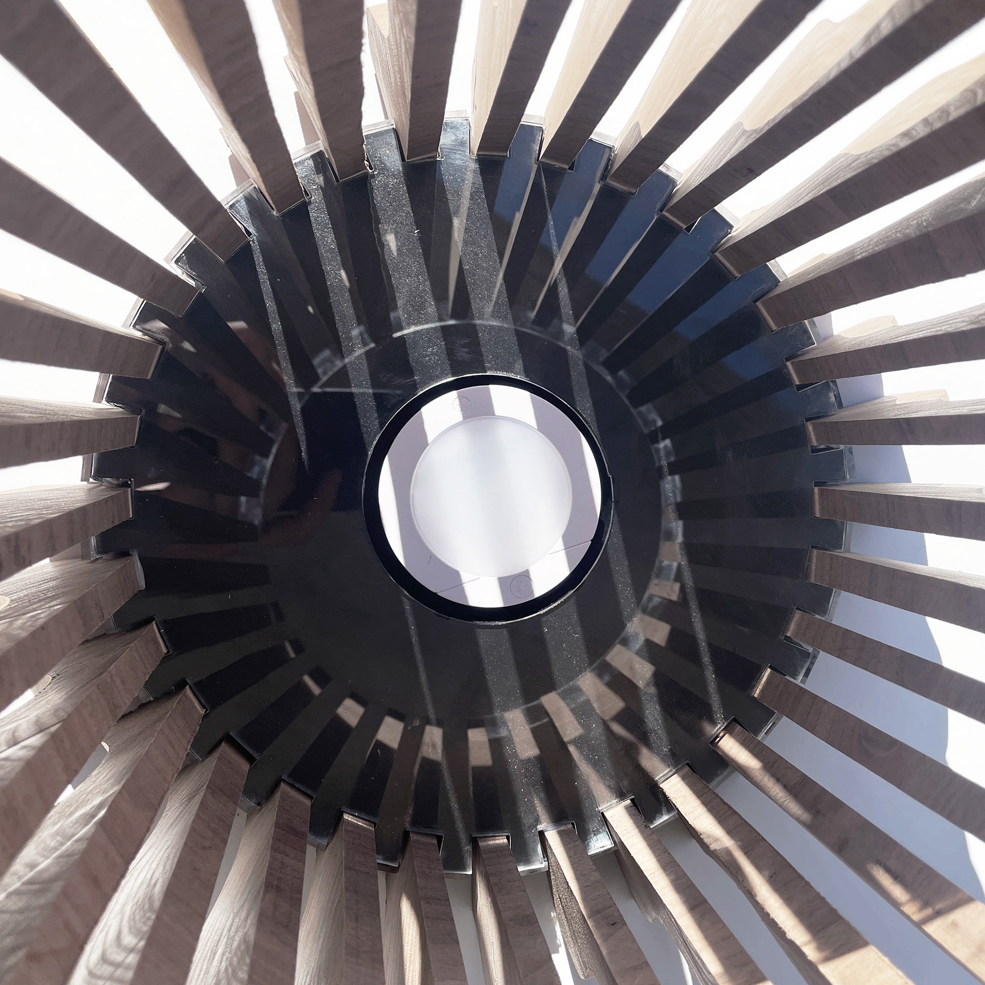 Filtered / Framed Light is a lamp sculpture that contrasts two methods of blocking light: diffusion through permeability and interruption through deliberate obstruction. A translucent resin element softens and disperses illumination, while contoured mahogany legs impose constraint, producing sharp, extended shadows. Together, these conditions reveal how material density, geometry, and orientation govern the behavior of light.